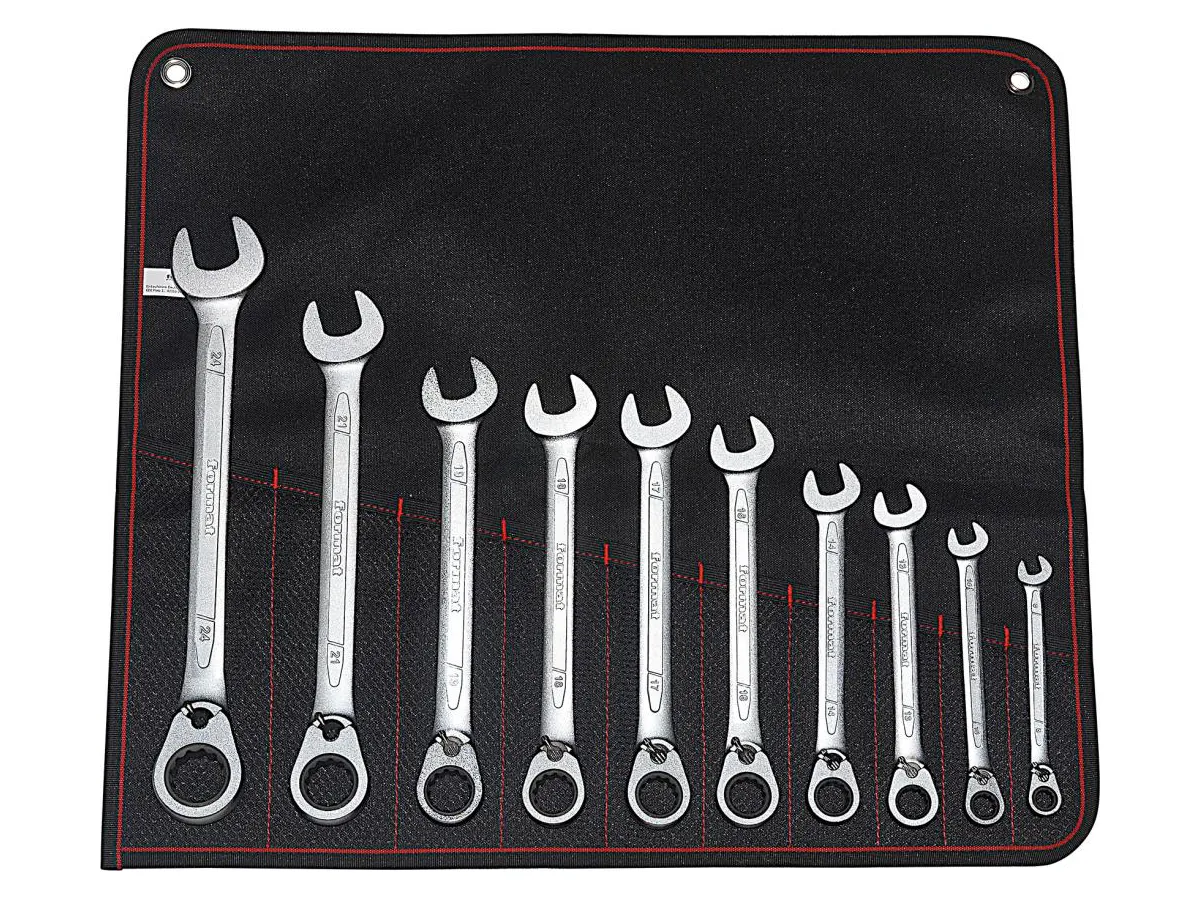 Combination spanner Set with ring ratchet , reversible, 10 Pcs 8; 10; 13; 15; 16; 17; 18; 19; 22; 24 mm
