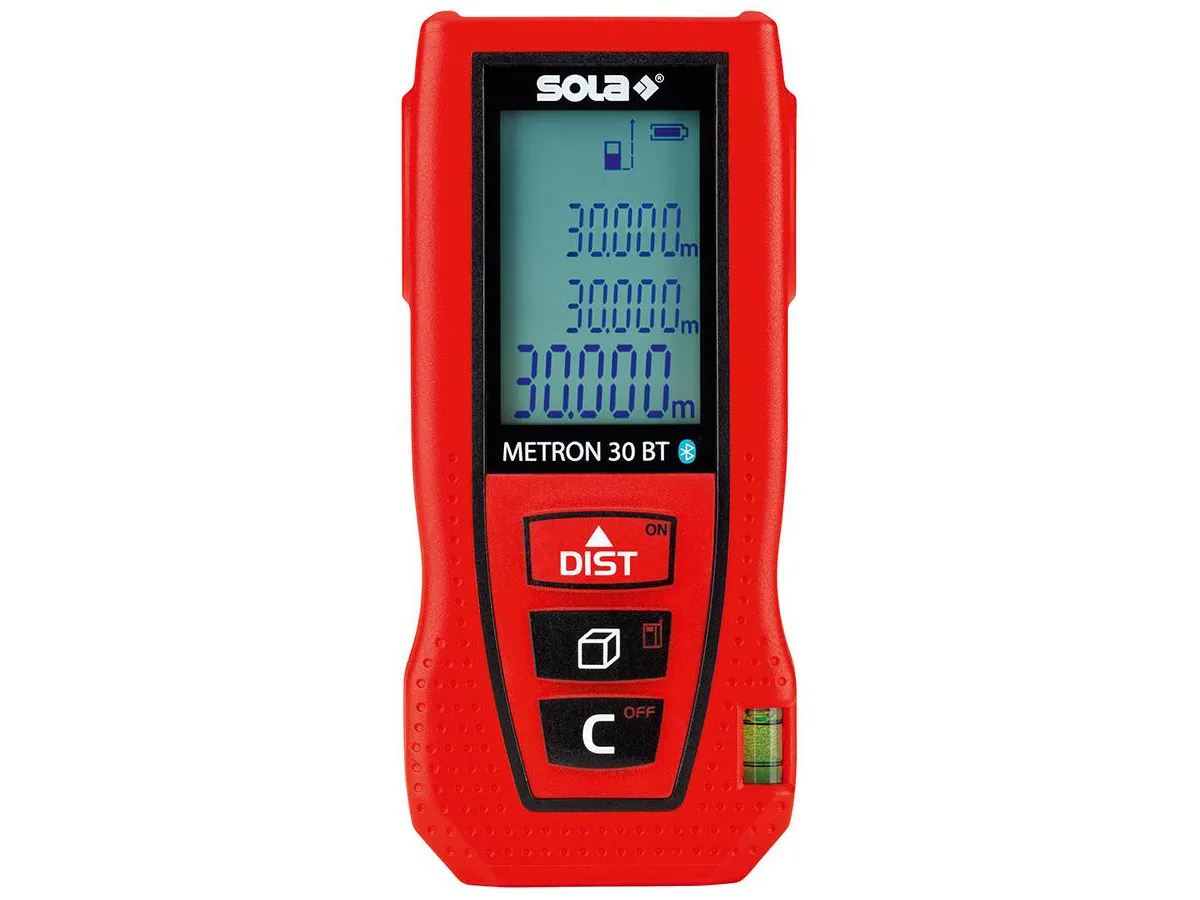 Laser distance meter, Integrated Bluetooth® interface for data transfer, illuminated display for quick reading in any lighting conditions, automatic switch-off, Integrated bubble level indicator for precise measurements. 6 measurement functions: length, area, volume measurement, min/max measurement, continuous measurement, indirect 2-point measurement. Delivery with wrist strap, belt bag and 2 micro-batteries
