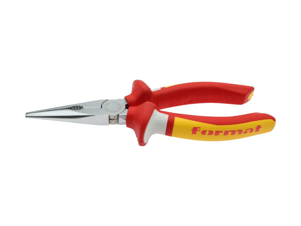 VDE Radio pliers, straight, Hardened and tempered in oil. Polished head, flat-round, straight jaws, serrated grip areas, blades additionally inductively hardened (61 HRC).
