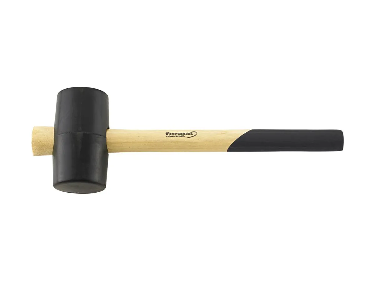 Rubber composite hammer, made of special rubber, hard quality (90 Shore), with ash handle.