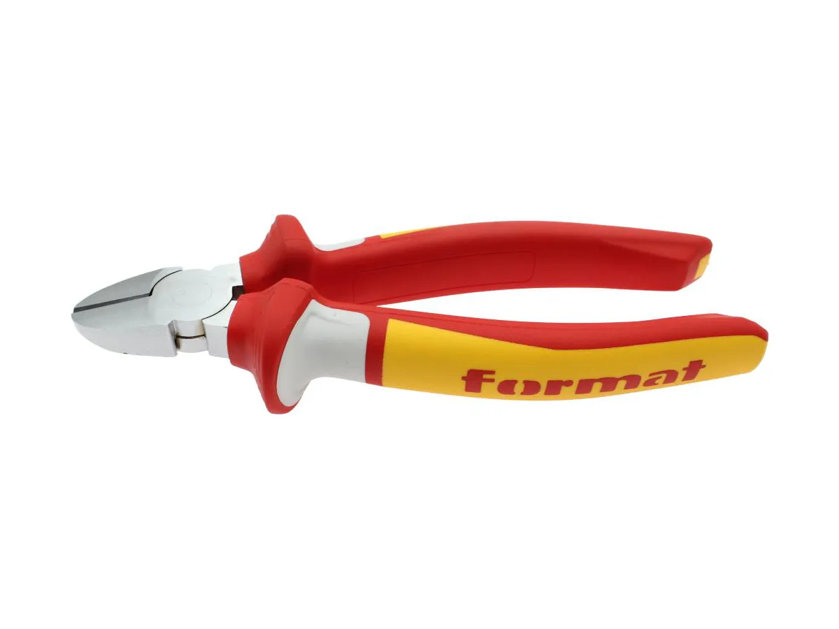VDE Side cutting pliers, Hardened and tempered in oil. Polished head, blades additionally inductively hardened (62 HRC), handles with multi component plastic coating.